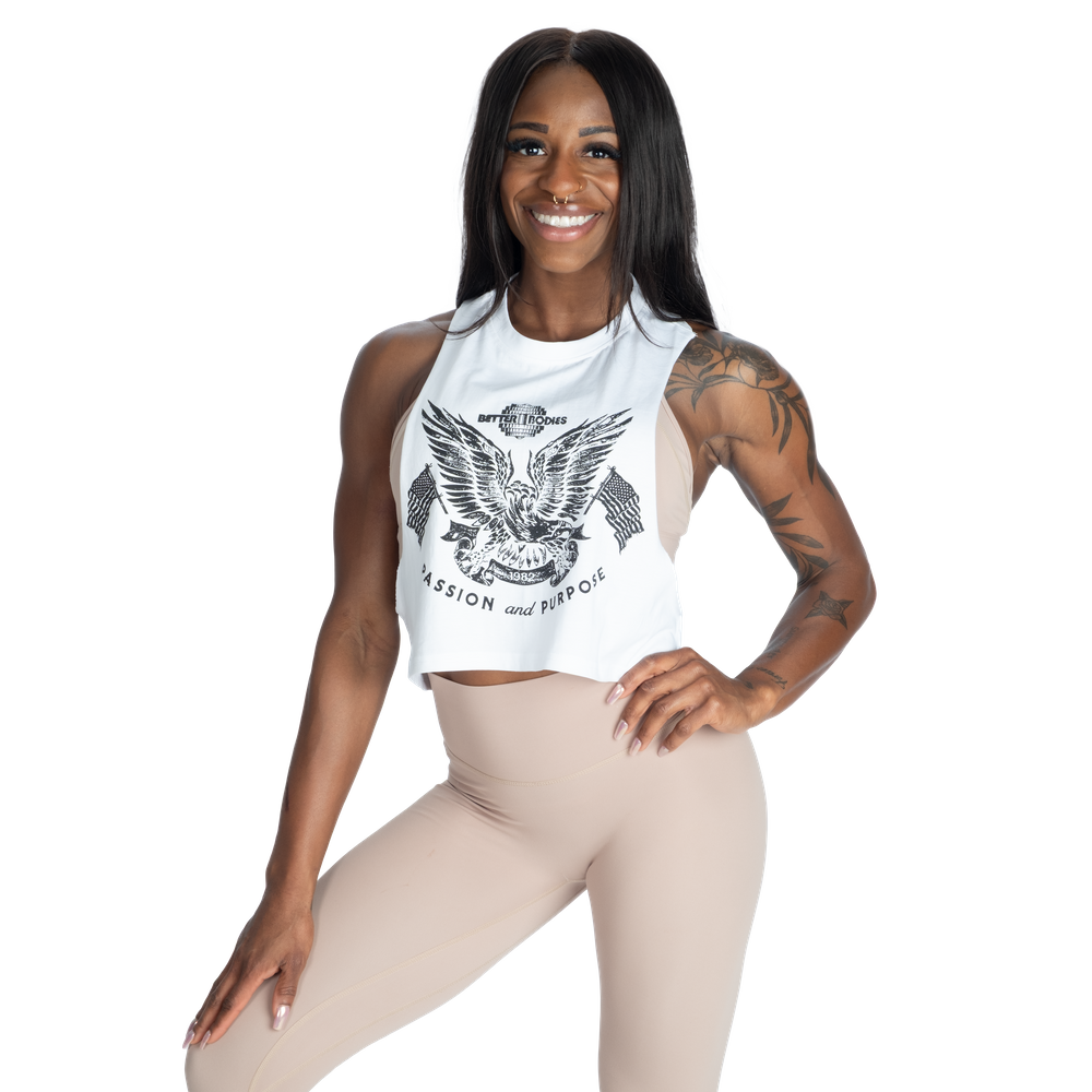 The Purpose Cut Out Tank also features a Better Bodies print on the chest.