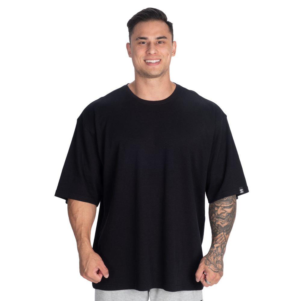 Features: Oversized Iron Tee silhouette, Textured thermal fabric, Blank design for a clean look or customization, Woven Better Bodies patch on left sleeve, Easy to layer or wear standalone