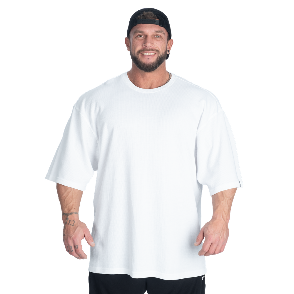 Features: Oversized Iron Tee silhouette, Textured thermal fabric, Blank design for a clean look or customization, Woven Better Bodies patch on left sleeve, Easy to layer or wear standalone