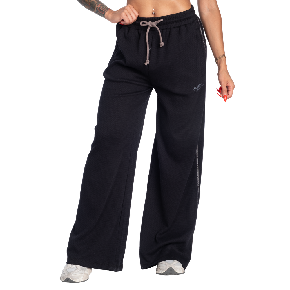 Features: Wide legs, high full fit, adjustable drawstring waist, front pockets with zippers, Better Bodies print under left pocket, bartack at side seams 5.5 cm up from hem (for easy length adjustment)